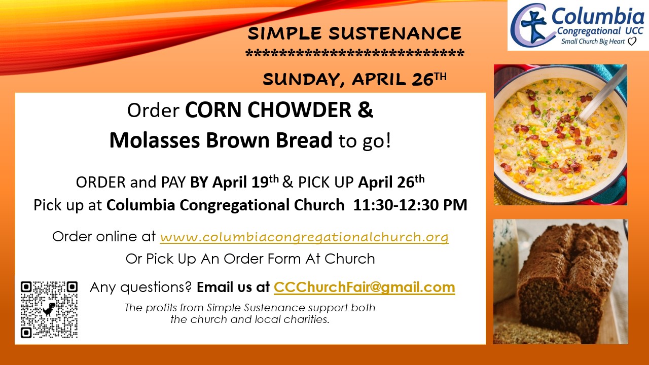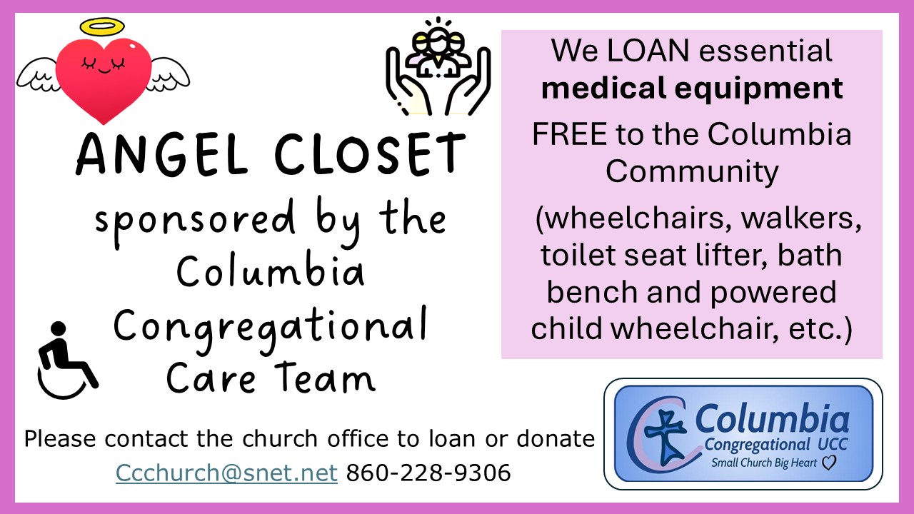 The mission of the Columbia Congregational United Church of Christ is to worship God and to preach and teach the Gospel of Christ; to promote Christian fellowship among our members and friends, and to live in Christian fellowship with the Church Universal and the whole creation; that we might live faithfully, serving God and humanity, and striving for righteousness, justice, and peace.
